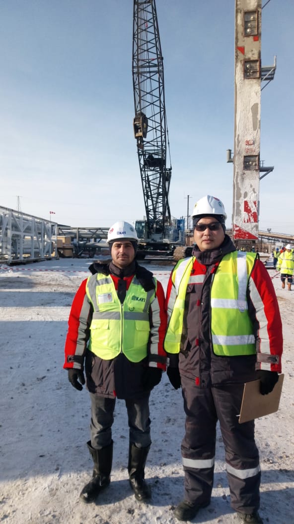 Рабочие моменты. Супервайзера трубомонтажников: Сайдалиев Олжас, Койшиев Мейрамбек